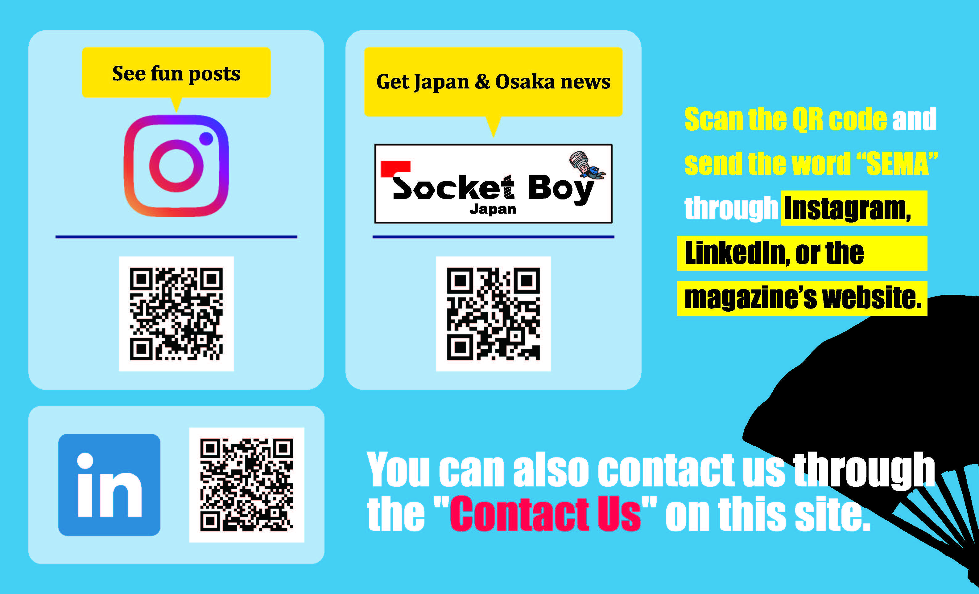 Send me a message saying SEMA on social media or magazine website, and I’ll give you a special Japanese gift! Scan the QR code or use the link to reach me!Instagram:@socketboy_magazine